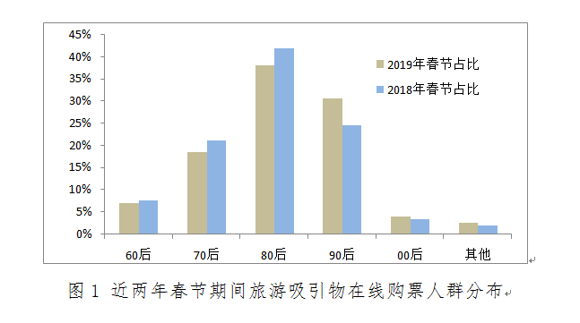 旅游过年追求生活品质。凯发k8官网与银联商务联合实验室数据显示,2019年春节期间高品质住宿设施消费人次增长超过45.3%,较上年同期提高7.7个百分点。其中35-44岁之间的男性支付占比最高,达到28.1%。此外,2019年春节期间游客餐饮日均消费笔数较节前提高43.7%,其中80后餐饮消费总金额最高。凯发k8官网与深大智能联合课题组研究发现,顺利获得在线平台购买旅游吸引物门票的游客中,80后同样居于领先位置,与90后的差距明显缩小。